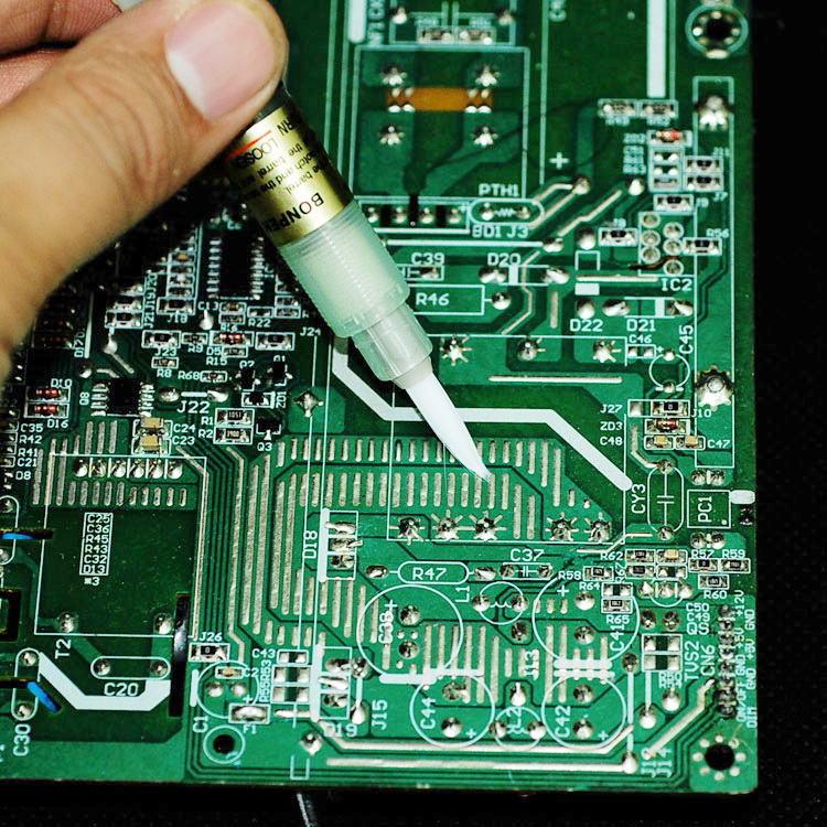 Wenn Sie beispielsweise Alkohol hinzufügen, können Sie als saubere Bürste eine transparente Hülle verwenden, die die Verwendung von Flussmitteln oder Reinigungsmitteln leicht verständlich macht.