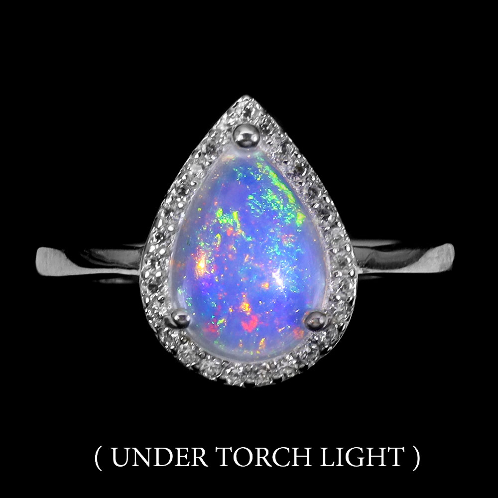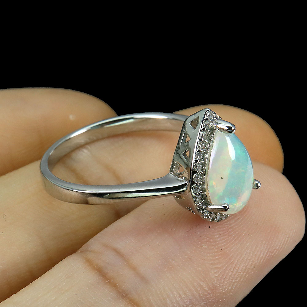 Unheated Pear Fire Opal Rainbow 9x7mm Simulated Cz 925 Sterling Silver Ring 7