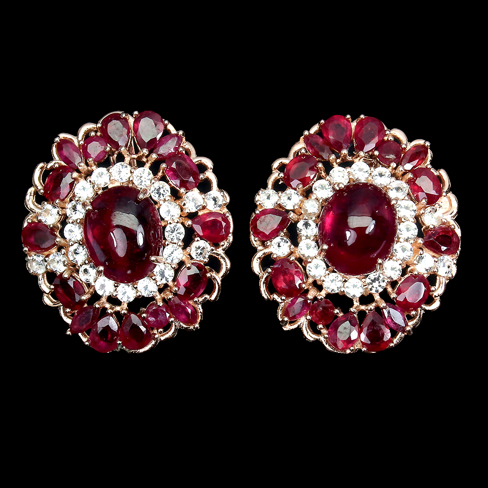 Oval Red Ruby 10x8mm Cz 14K Rose Gold Plate 925 Sterling Silver Earrings