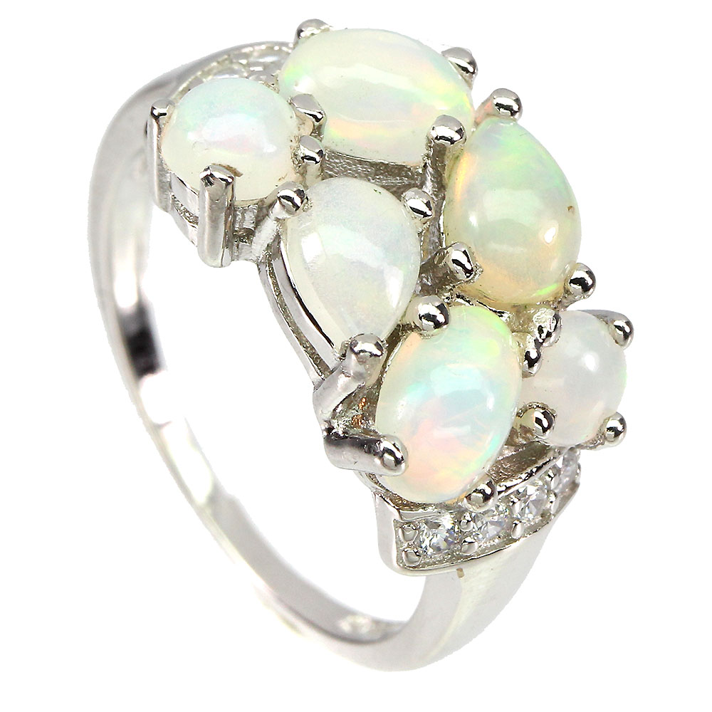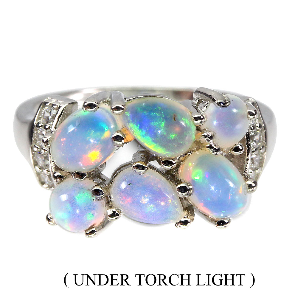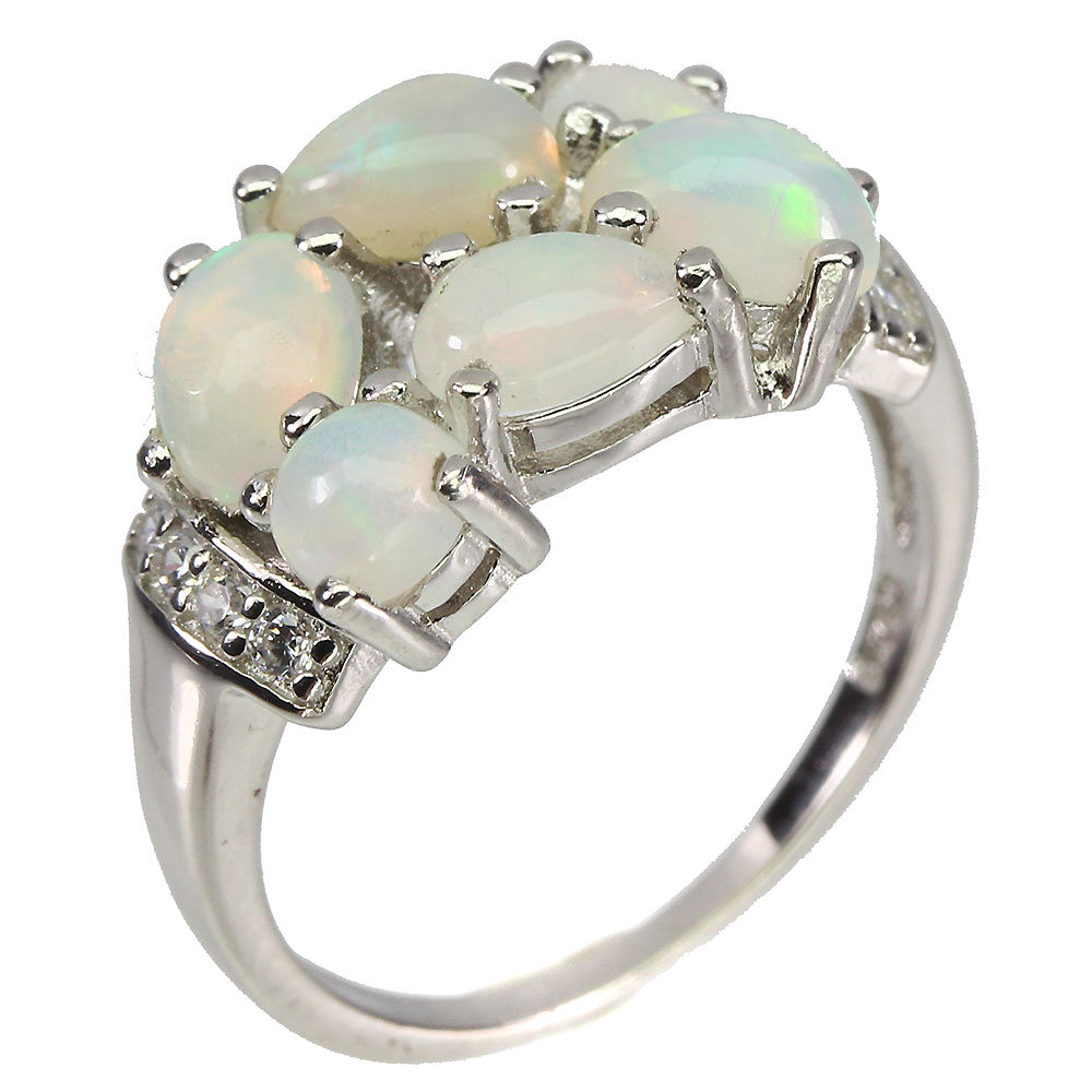 Unheated Oval Fire Opal Rainbow 6x4mm Simulated Cz 925 Sterling Silver Ring 6