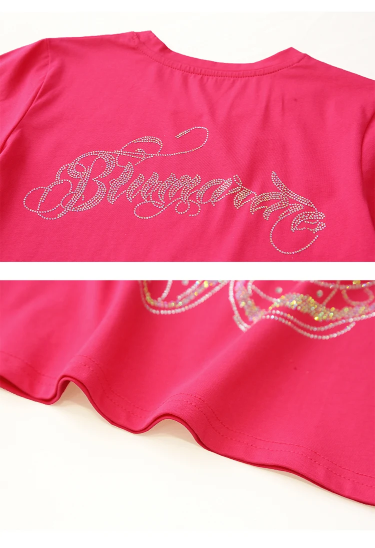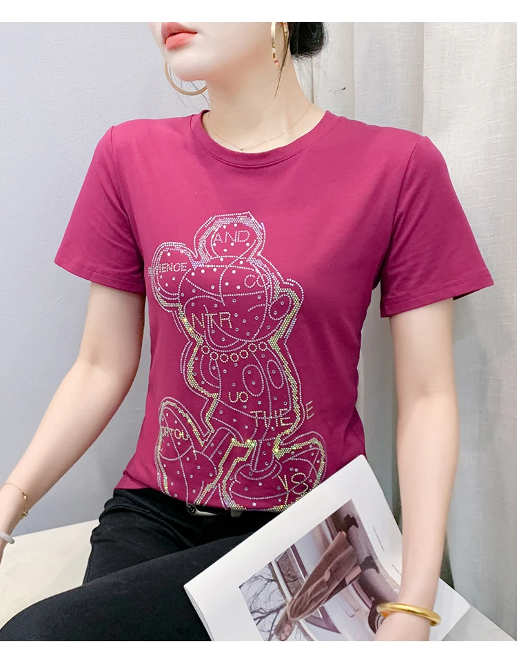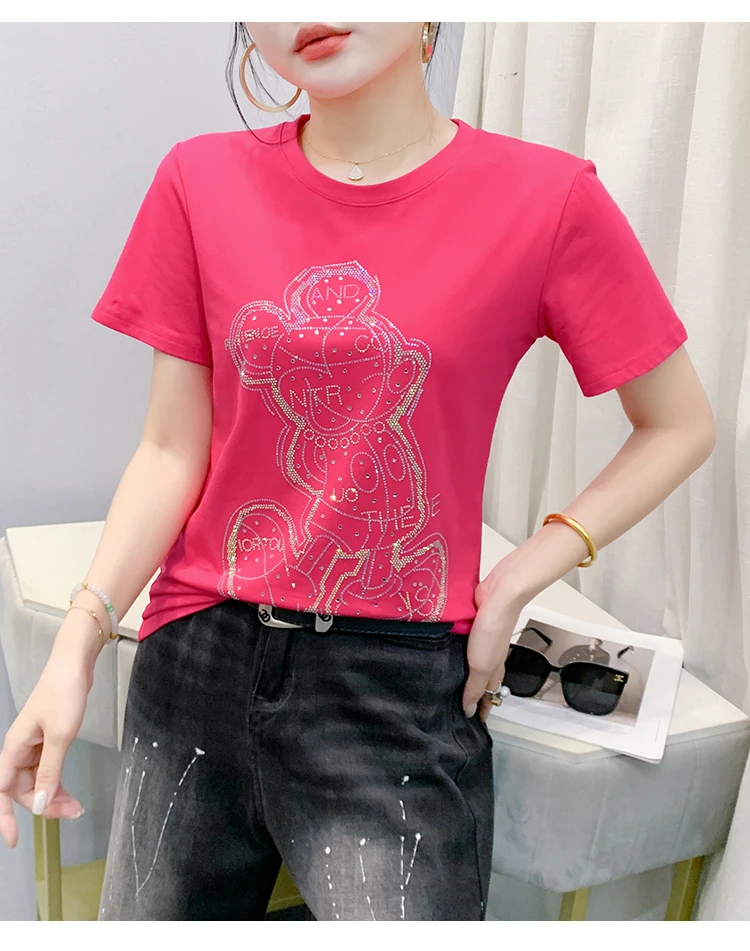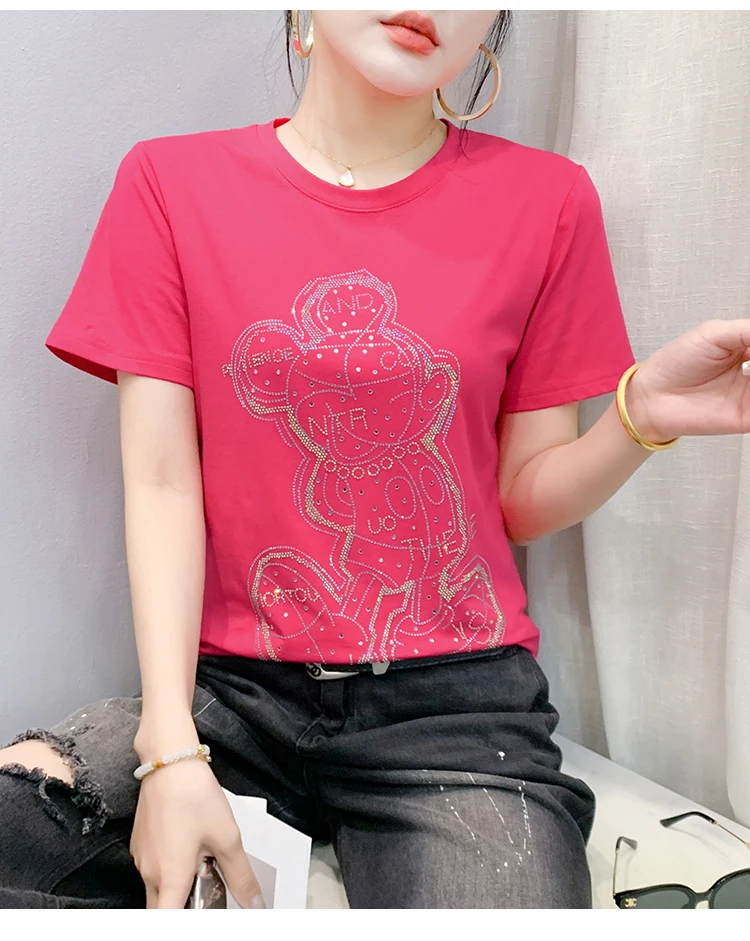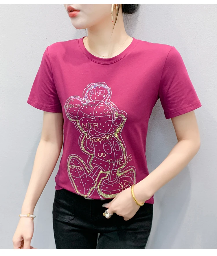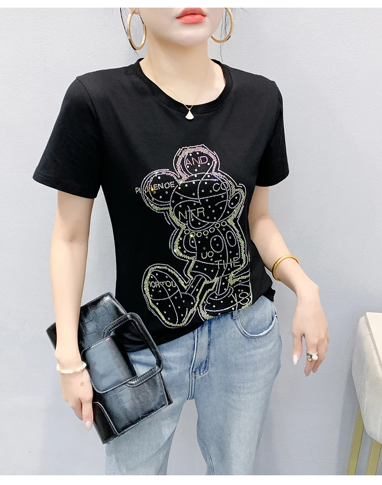 New Women Luxury Diamond Mickey Mouse Rhinestones T-Shirt High Quality 3 Colors