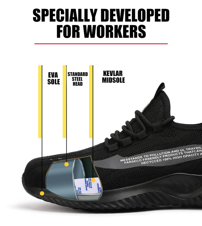 ✔️ Puncture-Proof Sole – 5mm-thick anti-penetration midsole shields against nails, glass, and sharp debris.