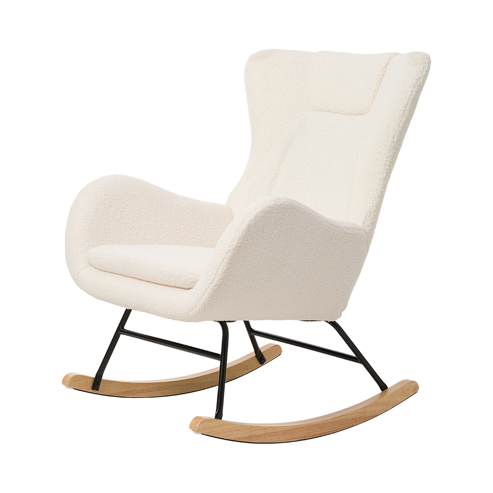 This delightful rocking chair is the perfect blend of style and comfort, elevating any space with its cozy charm. Crafted from premium lambswool/Velvet fabric and sponge filling, it offers a luxurious tactile experience while infusing warmth into your home. Its gentle rocking motion effortlessly melts away daily stress, creating a serene retreat for reading, resting, or unwinding. Whether placed in the living room, bedroom, or a cozy nook, this rocking chair transforms your space into a haven of relaxation and elegance.