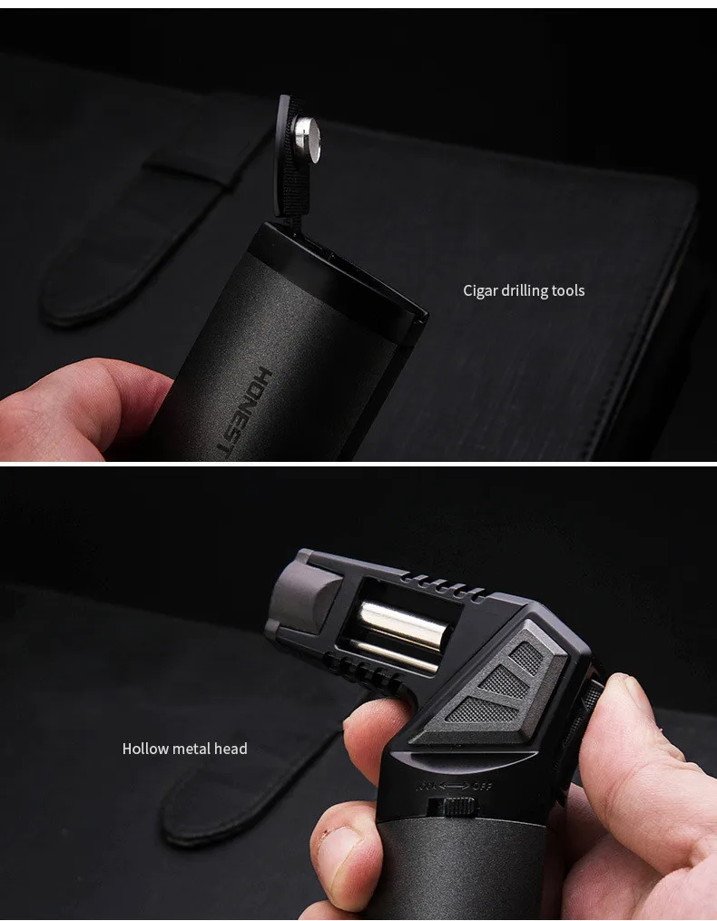 Cigarettes Lighter Gas Butane Refillable Windproof Quad Jet Flame Torch Lighter