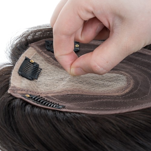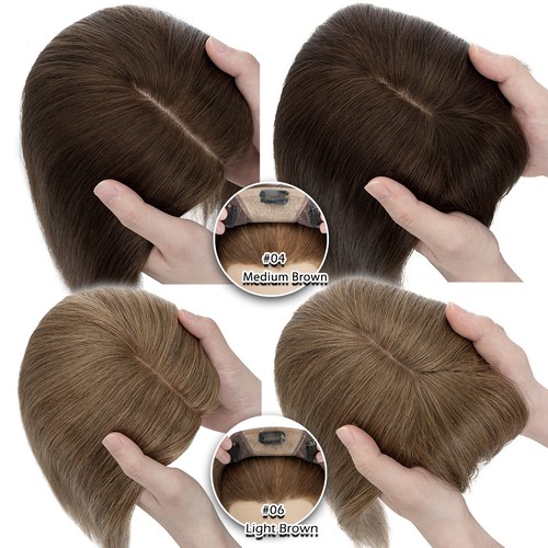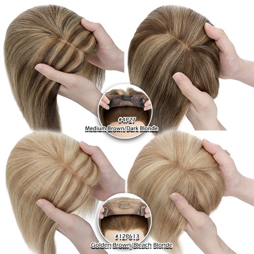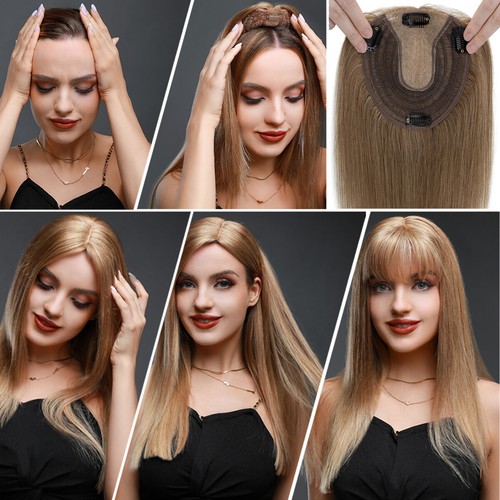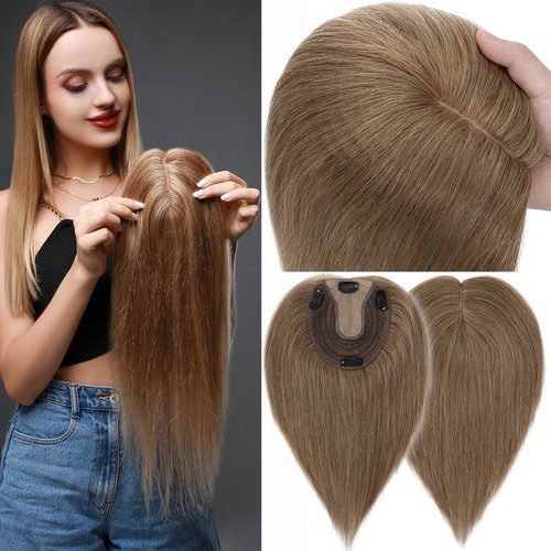 100% Human Hair Toupee Clip In Top Topper Wiglets Thick Silk Mono Base Real Remy