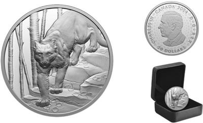 One of Canada’s Great Hunters. Solitary and elusive, the cougar relies on its senses to survive and prefers to remain unseen, but your coin’s reverse offers a rare glimpse of its stalk-and-ambush hunting technique.