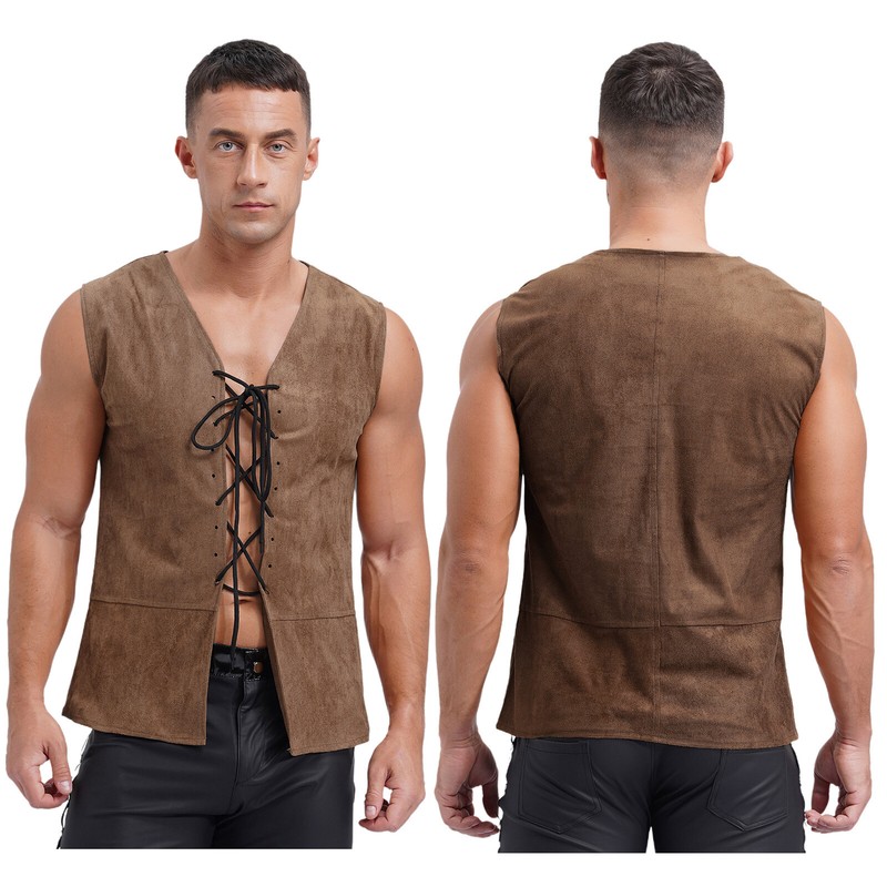 Designed with v neck, sleeveless, front lace-up and solid color, the vest in vintage style is perfect for cosplay and stage performance.