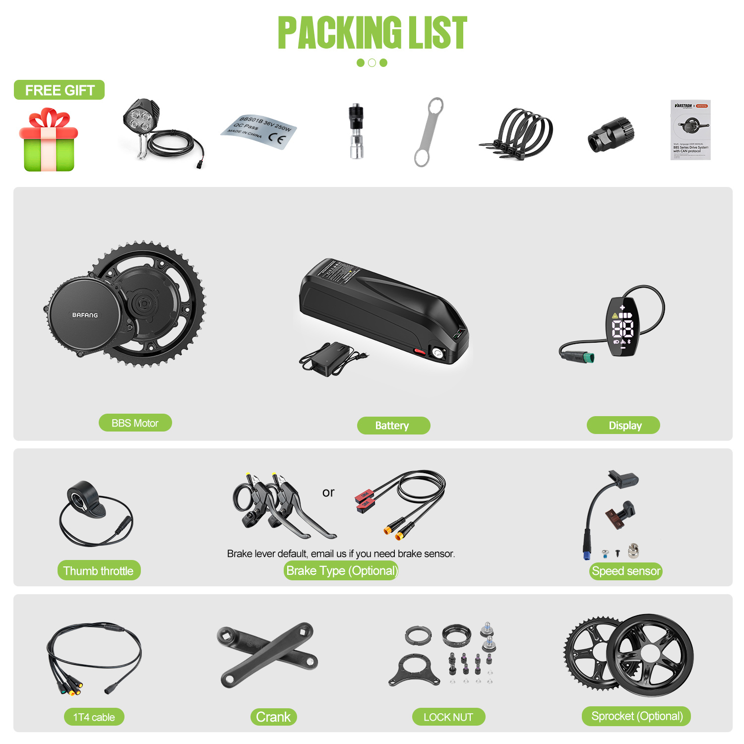1 * Brake Handle or Brake Sensor (default is brake handle, please leave a message or email us if you need a brake sensor.)