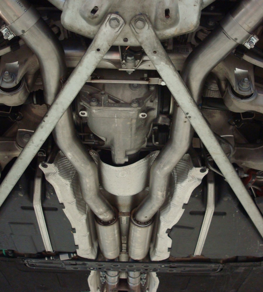 Eine optimale Abstimmung der Vorschalldämpfer auf Motortyp und Fahrzeug erzielen eine Leistungssteigerung. Die Vorschalldämpfer sind komplett aus V2A-Edelstahl (1:4301) gefertigt. Die Schalldämpfer sind nach dem Absorbtionsprinzip gebaut und überzeugen durch einen sportlichen dumpfen Klang.