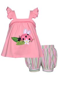 NEW Girls "PINK GREEN LADYBUG" Top Shorts Outfit 18M