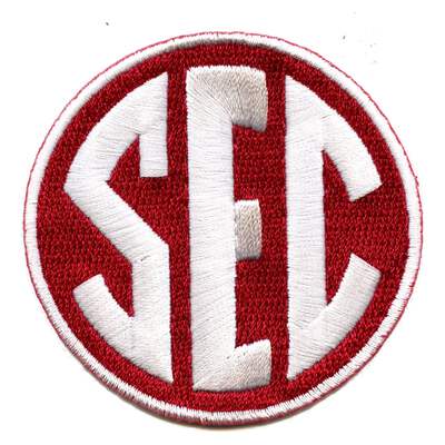 This is the SEC conference patch for the University of Oklahoma as worn on the field. These patches can be sewn on jerseys and are officially licensed by the SEC. The patch measures approximately 2.5 inches in diameter.