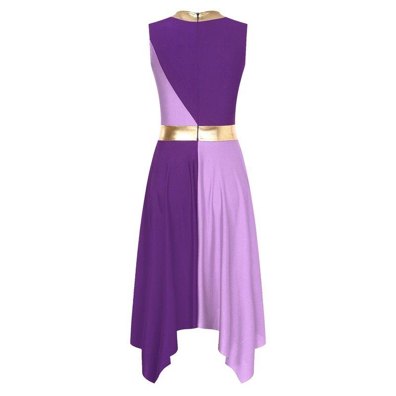 Sleeveless liturgical dance dress for women, color block patchwork design, classic round neck, simple but stylish.