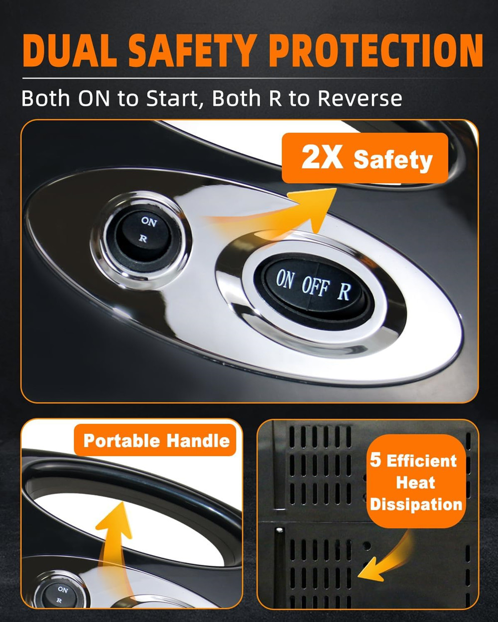 All the parts can be easily separated to thoroughly clean, assembly is easy and so is cleanup. Press the switch to start working, when food is jammed, the reverse function plays a major role and will fix it immediately. Best of all, the entire device is made of high-quality stainless steel, aluminum alloy etc. 【Easy to Use】