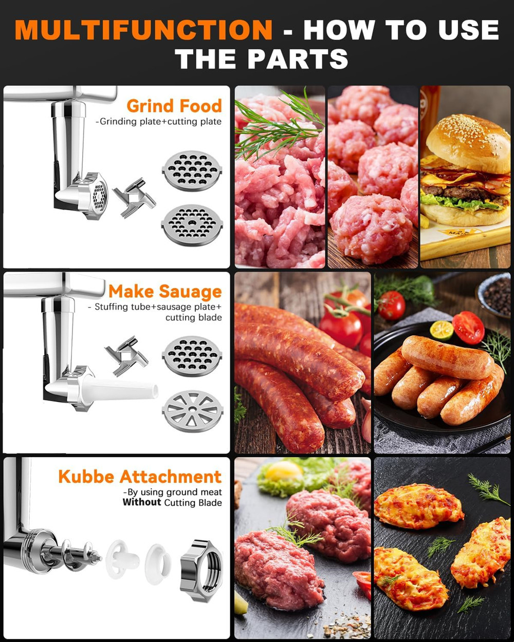 【Multifunctional Electric Meat Grinder】 This Electric Meat Grinder has An Impressive Three Blades Perfect For Any Meat Requirement. The Fine Blade Is Ideal For Sausages, Mincer Sausage Stuffer, Heavy Duty Food, Patés And Spreads. Impress yourself and others at a BBQ by Making Your Own Burgers and Sausages. 【Food-Grade & Stainless Steel Grinder】