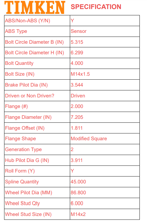 (1) TIMKEN Wheel Hub and Bearing Assembly SP550219