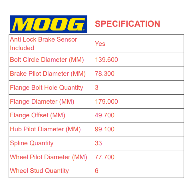 MOOG Front Wheel Bearing & Hub Assembly