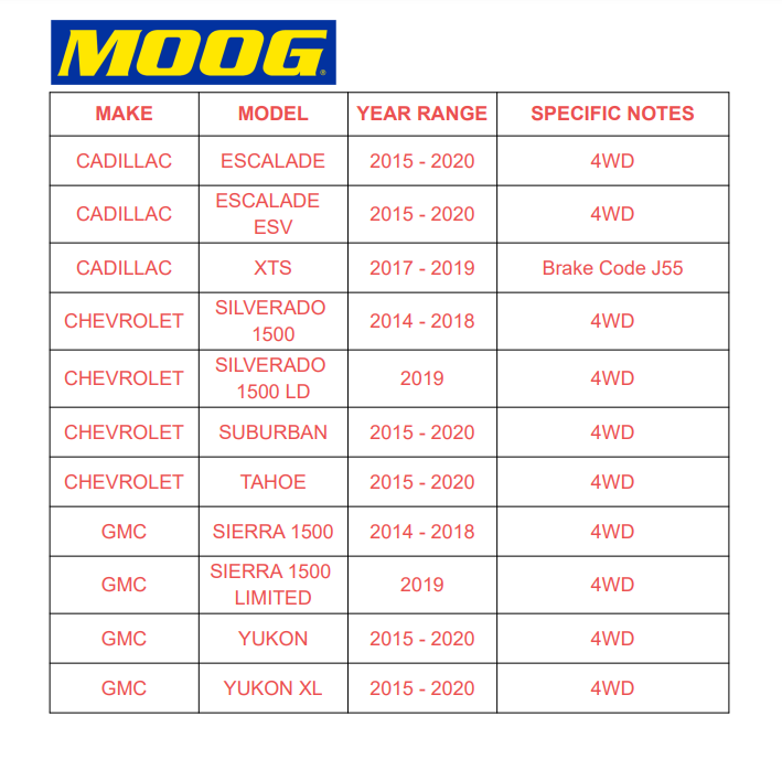 4WD MOOG Front Wheel Bearing Hubs for 15-20 Chevy Suburban Tahoe Yukon Escalade