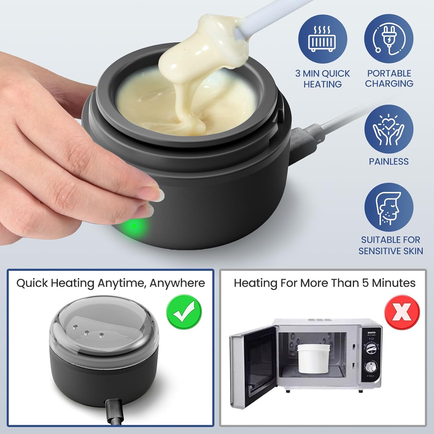- 【Easy to carry】: Our wax machine is specially designed to easily remove hair from small areas such as nose hair, eyebrows, and ears. Its portable size allows you to put it in your bag conveniently, and you can carry it with you when necessary for emergency social needs—also ensuring that waste of melted wax is minimized during use.