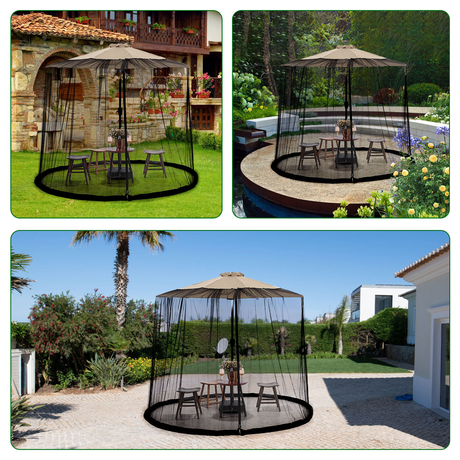 This umbrellas table screen is made of premium polyester, the 1mm mesh fabric is sufficient to maintain visibility.Enjoy the beautiful outdoor scenery with the transparent mesh, which allows you to see through. 【Versatile Usage】