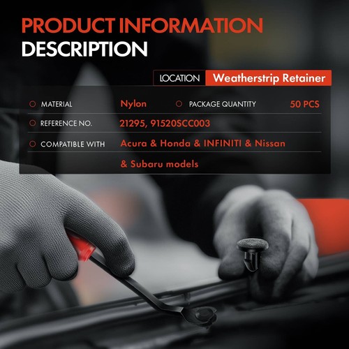50Pcs Weatherstrip Retainer Clips for Honda Civic Accord Nissan Subaru 6mm Nylon