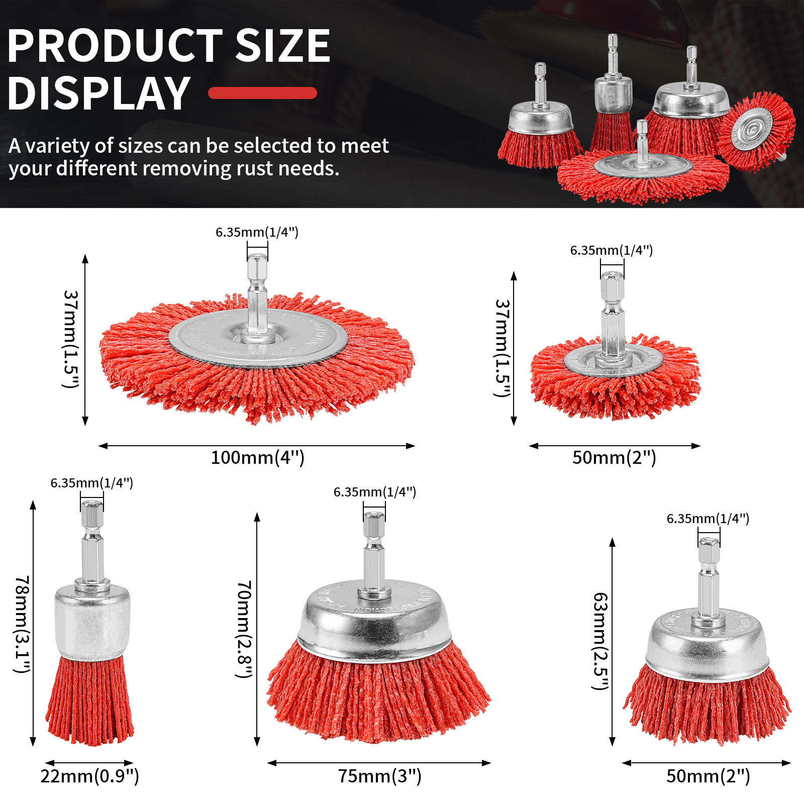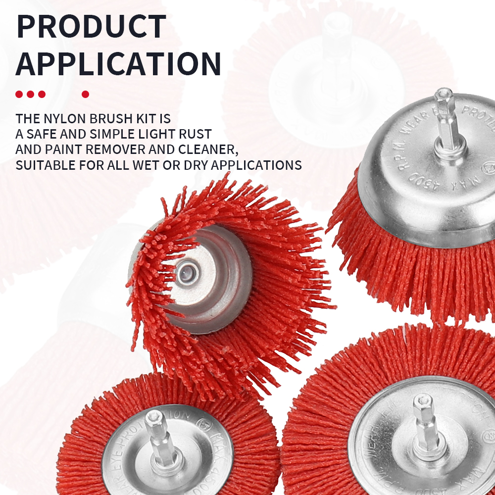 【WIDE APPLICATION】: Nylon brush kits are safe and easy to use light rust and paint remover and cleaner for most wet or dry applications such as metal, steel, stainless steel, wood, aluminum, plastic, PVC, tile, stone, etc