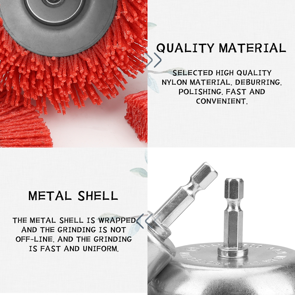 【Good quality】: The brush head is polished with high-quality nylon material, which has good deburring effect and is not easy to fall off, and the metal shell is used, and the grinding is not easy to go offline, and the grinding effect is fast and even, which can bring a good experience to your work