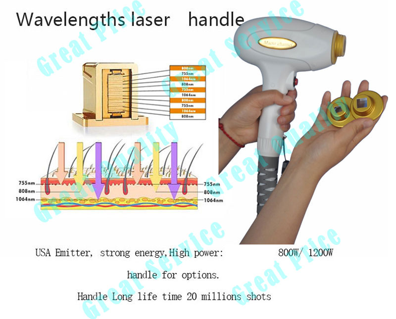 As an integrated solution, our machine combines the benefits of all 3 wavelengths 808nm 755nm 1064nm into one handle, 3 wavelengths have different laser characteristics. Targeting different tissue depths as well as structures within the hair follicle. Thus to the greatest extent to ensure the effective treatment and Virtually painless, achieves the safest and most comprehensive hair removal treatment available today. Really reach: painless, fast, effective and suitable for all kinds of skin type easily .