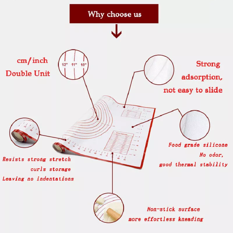 Non-Stick Silicone Baking Mat Rolling Clay Fudge Cake Dough Scale Pastry Sheets