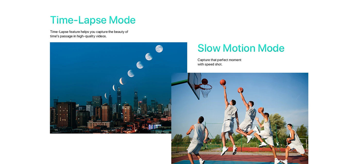 Time-Lapse feature helps you capture the beauty of time's passage in high-quality videos.