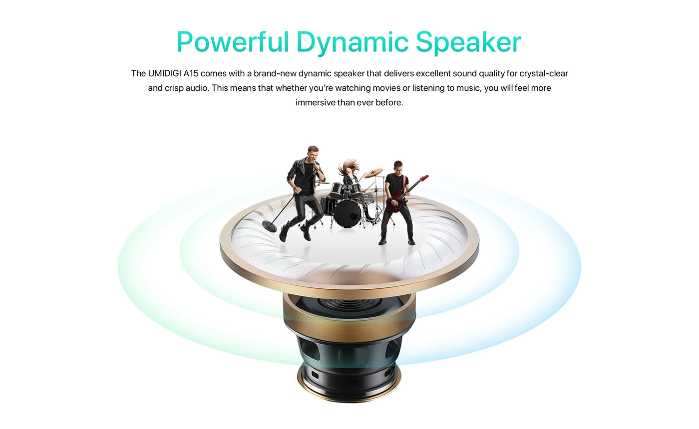 The UMIDIGI A15C comes with a brand-new dynamic speaker that delivers excellent sound quality for crystal-clear and crisp audio. This means that whether you're watching movies or listening to music, you will feel more immersive than ever before.