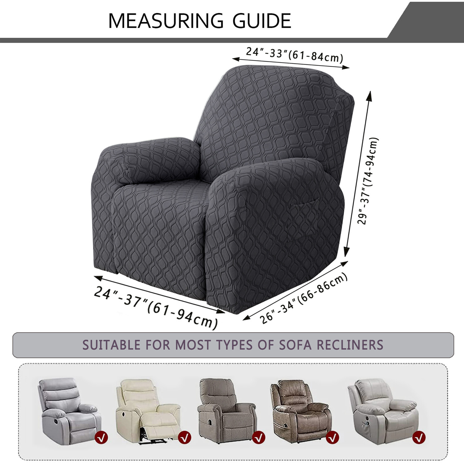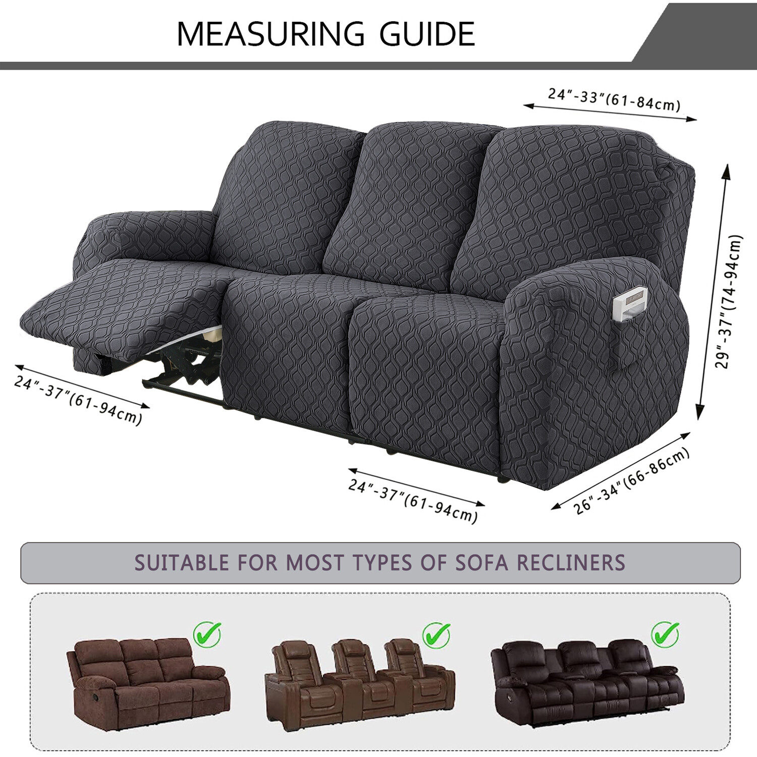 ◆ Multiple Sizes: Sizes available for one seat (24-37 in wide), two-seat (48-66 in long, 29-37 in high), and three-seat recliners (69-91 in long, 30-41 in high). Please check the measurement guide in the pictures before purchase for the best fit.
