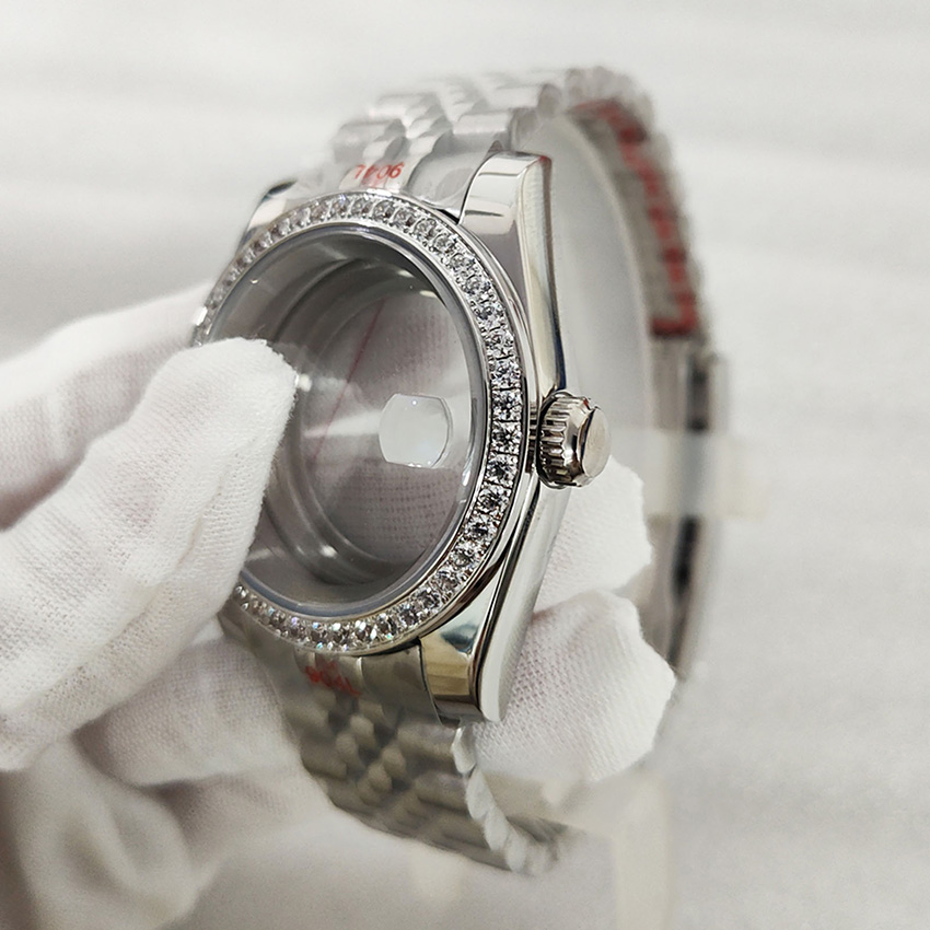 36/39mm Stone Bezel Logbook Stainless Steel Transparent Watch Case + Watch Strap Accessories for Japan NH35/NH36/4R/7S Movement Features: l High quality for professional use l Replacement watch case/strap for the original broken old one l Help to repair your watch, and make it work properly l Also can be used as spare parts to upgrade and modify your watch Specification: l Colors and Types (Optional): 36mm Steel Stone + Magnifying Glass + Five Bead Strap, 36mm Steel Stone + Flat Glass + Five Ball Strap, 39mm Steel Stone + Magnifying Glass + Five Ball Strap, 39mm Steel Stone + Flat Glass + Five Ball Strap l Size: Transparent Base 36MMxThickness 12.5MM l Size: Transparent Base 39MMx13.4MM (excluding crown measurement) l Suitable for Font Size: 29MM-28.5MM l Glass: Synthetic Sapphire Glass l Strap Size: 20MM l Waterproof: 3ATM l Applicable Model: for Japan NH35/NH36/4R/7S Movement Package: l 1x Watch Case + 1x Watch Strap Note: l Due to the difference between different monitors, the picture may not reflect the actual color of the item,please make sure you do not mind before ordering, Thank you!