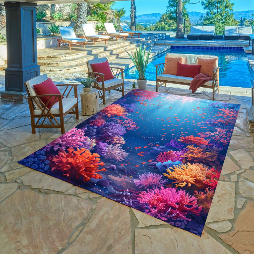 Vibrant Colorful Spring Summer Fall Winter Ocean Underwater Pattern Waterproof No Slip Outdoor Area Rug for Patio Deck Porch Balcony Backyard,Modern Art Decor Machine Washable Home Office Indoor Outdoor Floor Carpet Hallway Entryway Kitchen Laundry Bathroom Livingroom Bedroom Garden Rug.