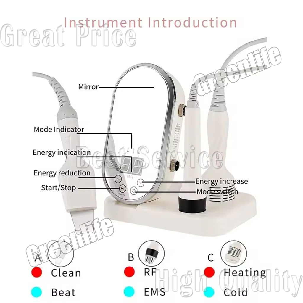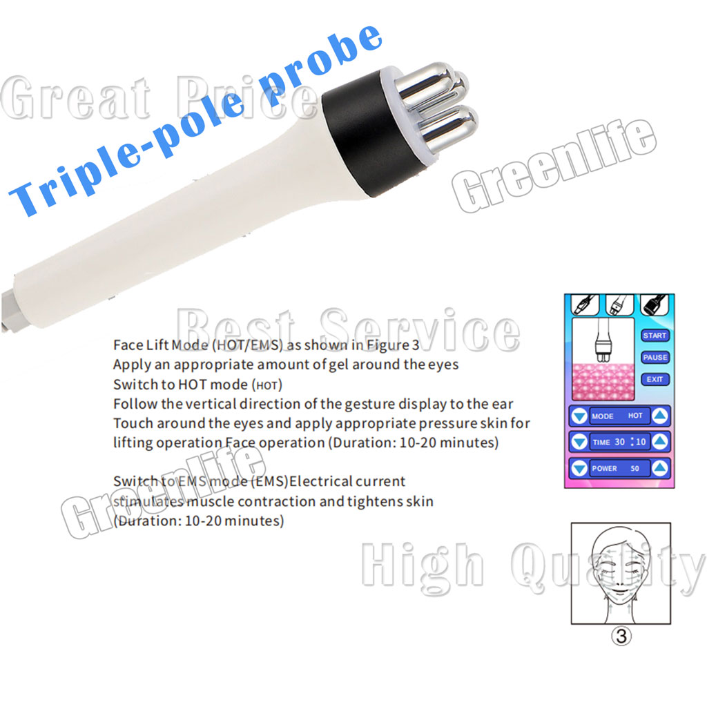 1. Tripolar R Frequency: R Frequency penetrates deep skin and generates heat to accelerate collagen contraction and regeneration to lift and tighten skin, remove wrinkles.