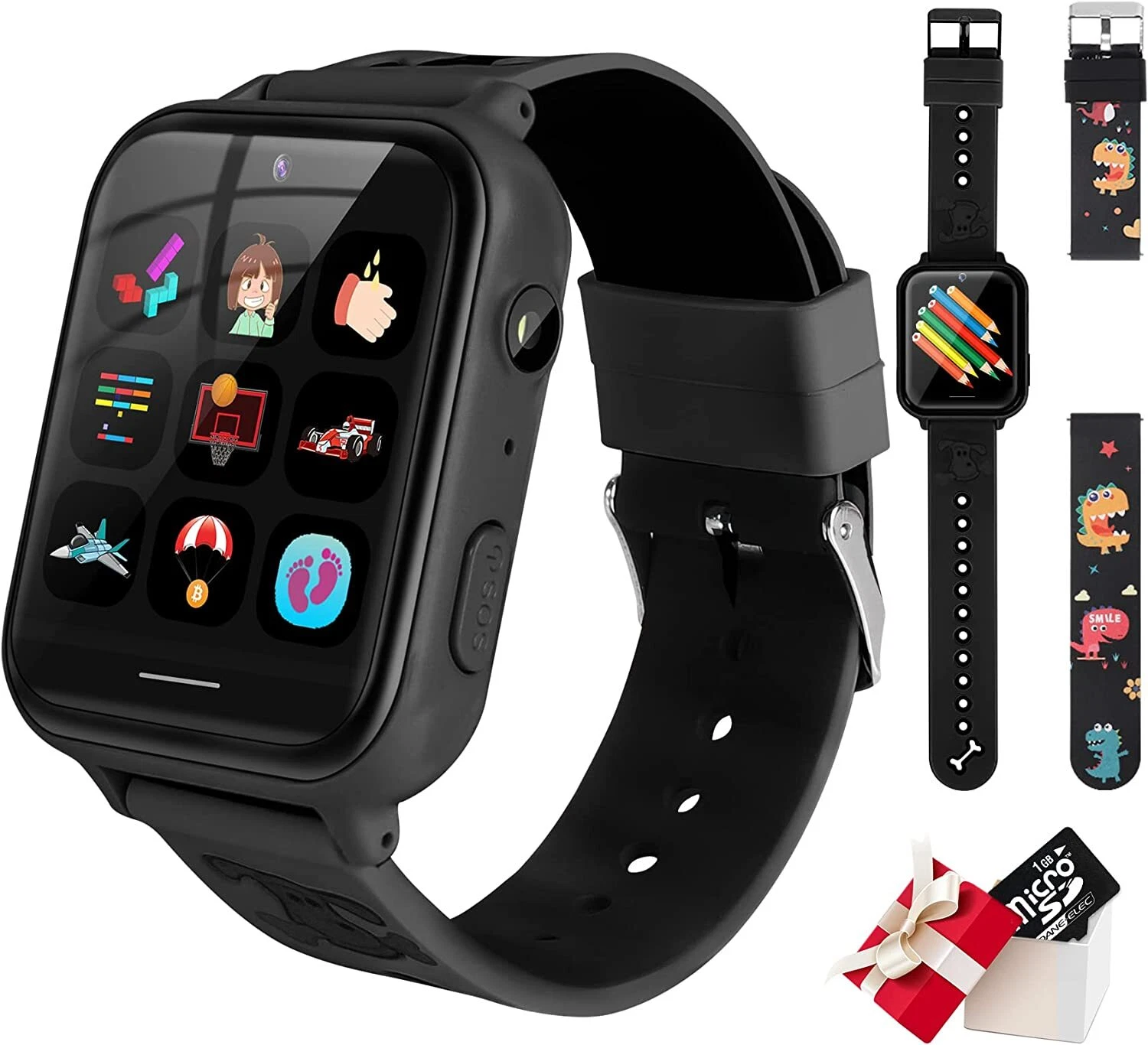【Video Recorder&Camera&Game】 Children’s smartwatch has powerful functions. Your child can use the video and camera functions to record beautiful moments with their friends. It can also be used as an MP3 music player. The attached USB data cable can Download some sleeping music to the watch, just like you are company with your child.(1GB SD Card) 【Perfect Gift for Boys Girls】