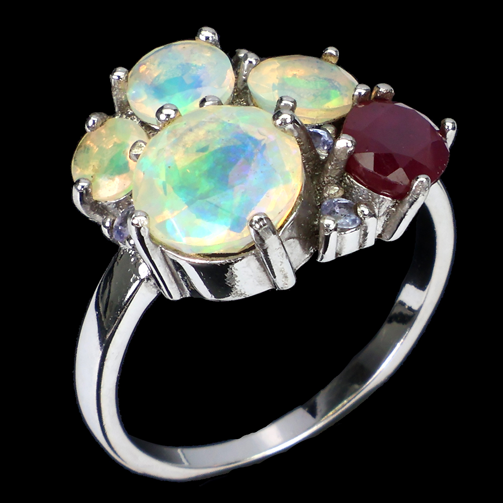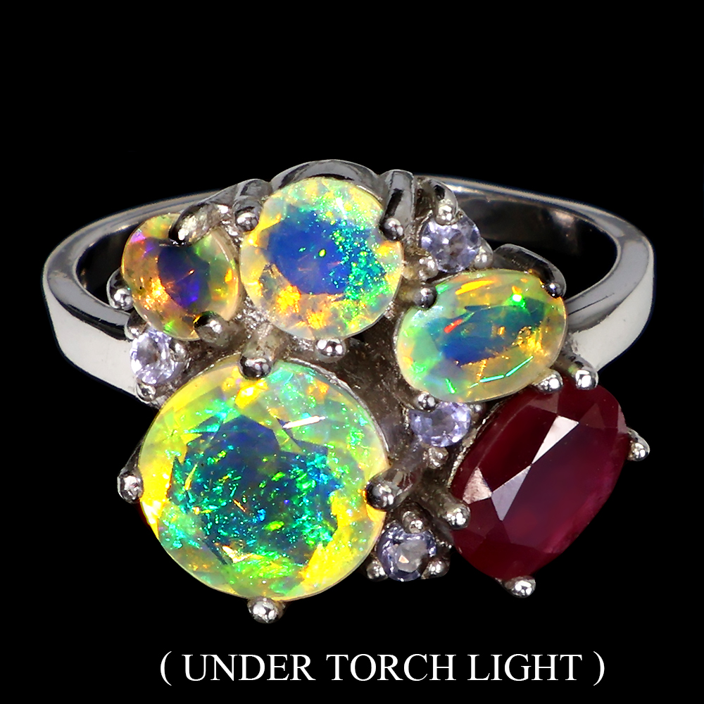 925 Sterling Silver Ring Round Fire Opal 8mm Ruby Natural Gemstone Jewelry Size 7