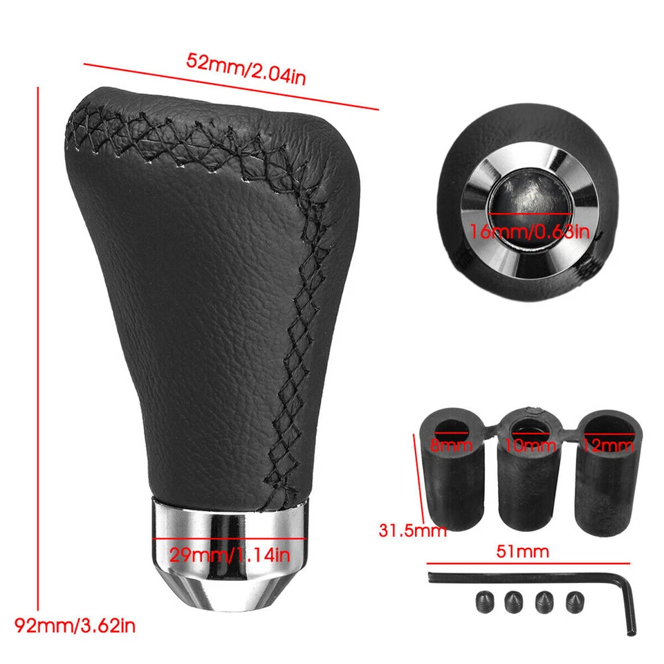Fitment : Length : 92mm/3.62in Inner diameter : 16mm/0.63in Shift Knob Hole: 8mm, 10mm, 12mm Universal for most vehicles Please Note: The Compatibility is just for reference.Please make sure the size before you buy. Many thanks!