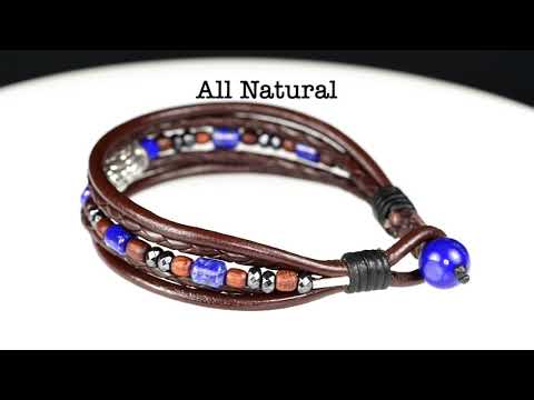 Bravo \u0026 Co. Sterling Silver Lapis Lazuli Wood and Leather Wristband Bracelet B-505