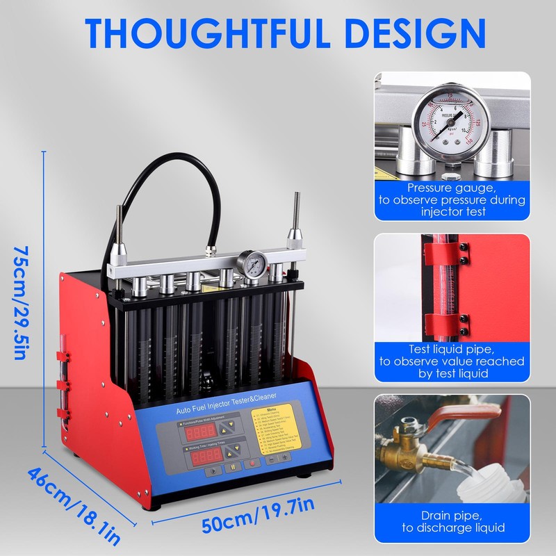 Improved Performance: Our injector cleaner machine ensures easy starting, strong acceleration, and stable idling while preventing engine damage. Reduce serious carbon deposits in the cylinder to make injectors work normally, saving time and labor with this efficient device