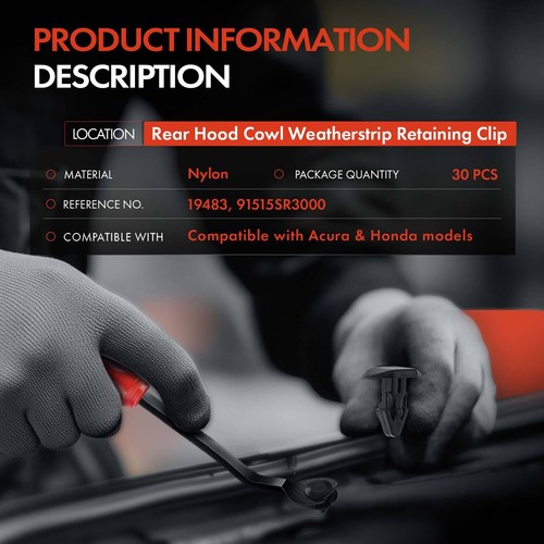30Pcs Rear Hood Cowl Weatherstrip Retainer Mounting Clip for Honda CR-V 97-99