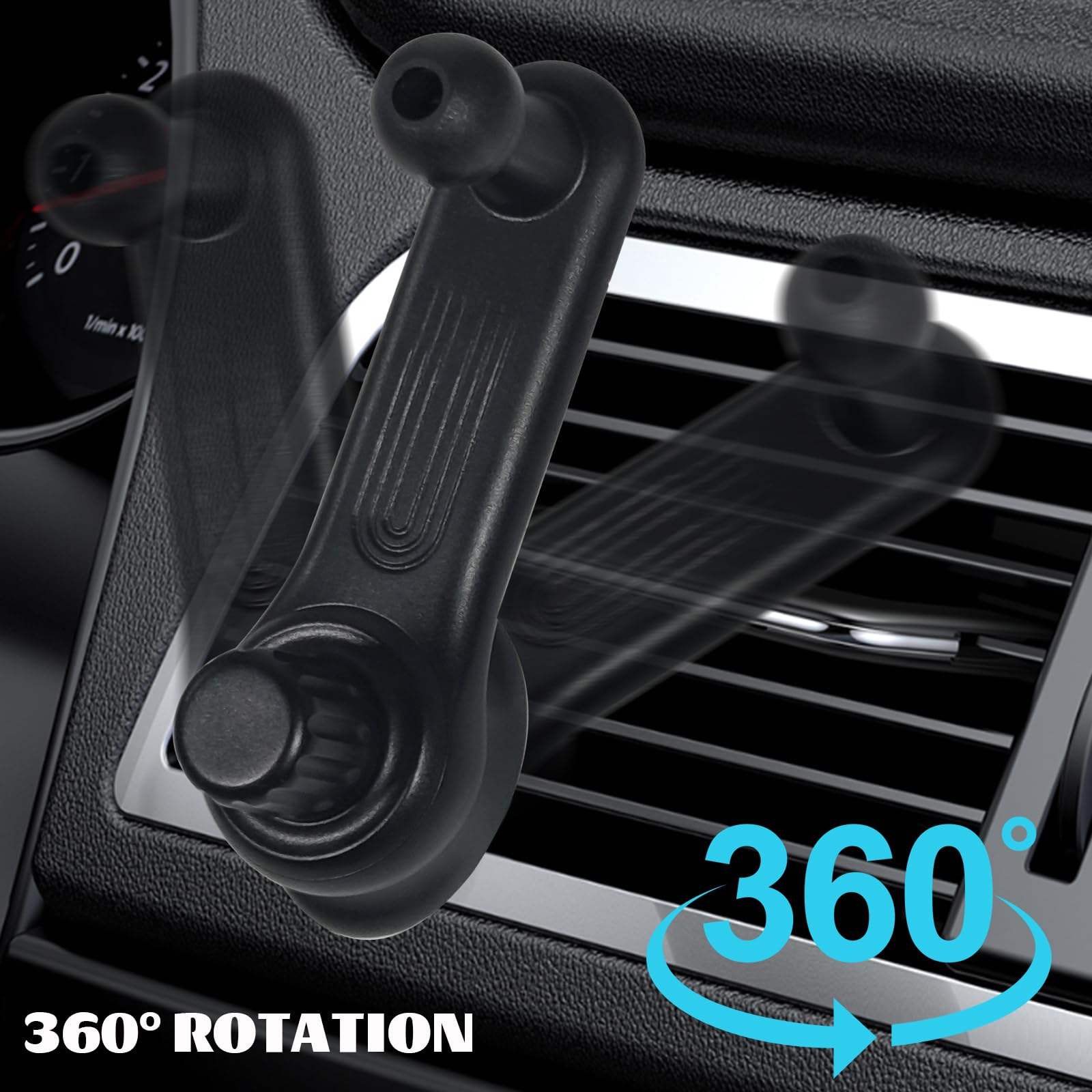 With the 360° swing extension-arm,your phone will not completely block the vent after install the car phone holder as close to the edge of the air vent as possible,enjoy the comfort of the A/C.