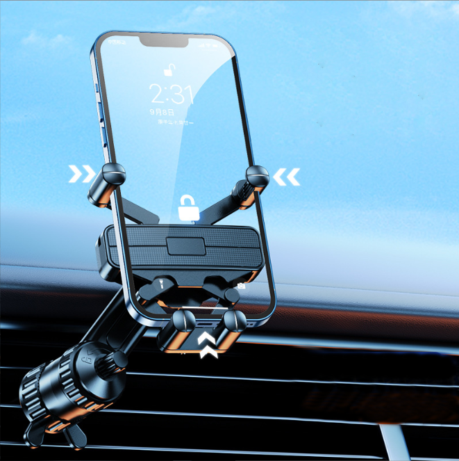 This gravity slide-in car phone holder mount creatively features the Auto-lock arm-slots that stretch on the side can auto adjust to hold phone more firmly without fears of bumps, Special curve of arms fit phone better.