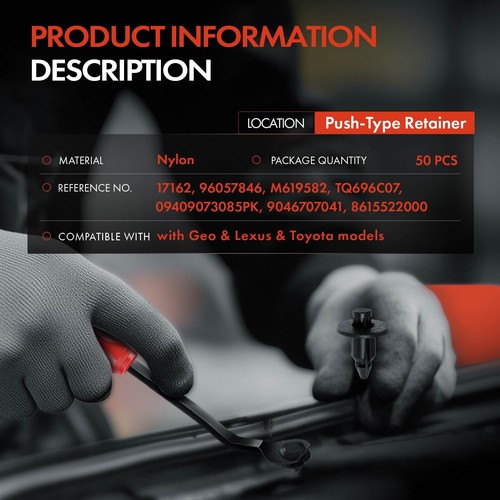 50Pcs Door Trim Retainer Clip Push-Type for Toyota Corolla Lexus Geo 6.3mm Nylon