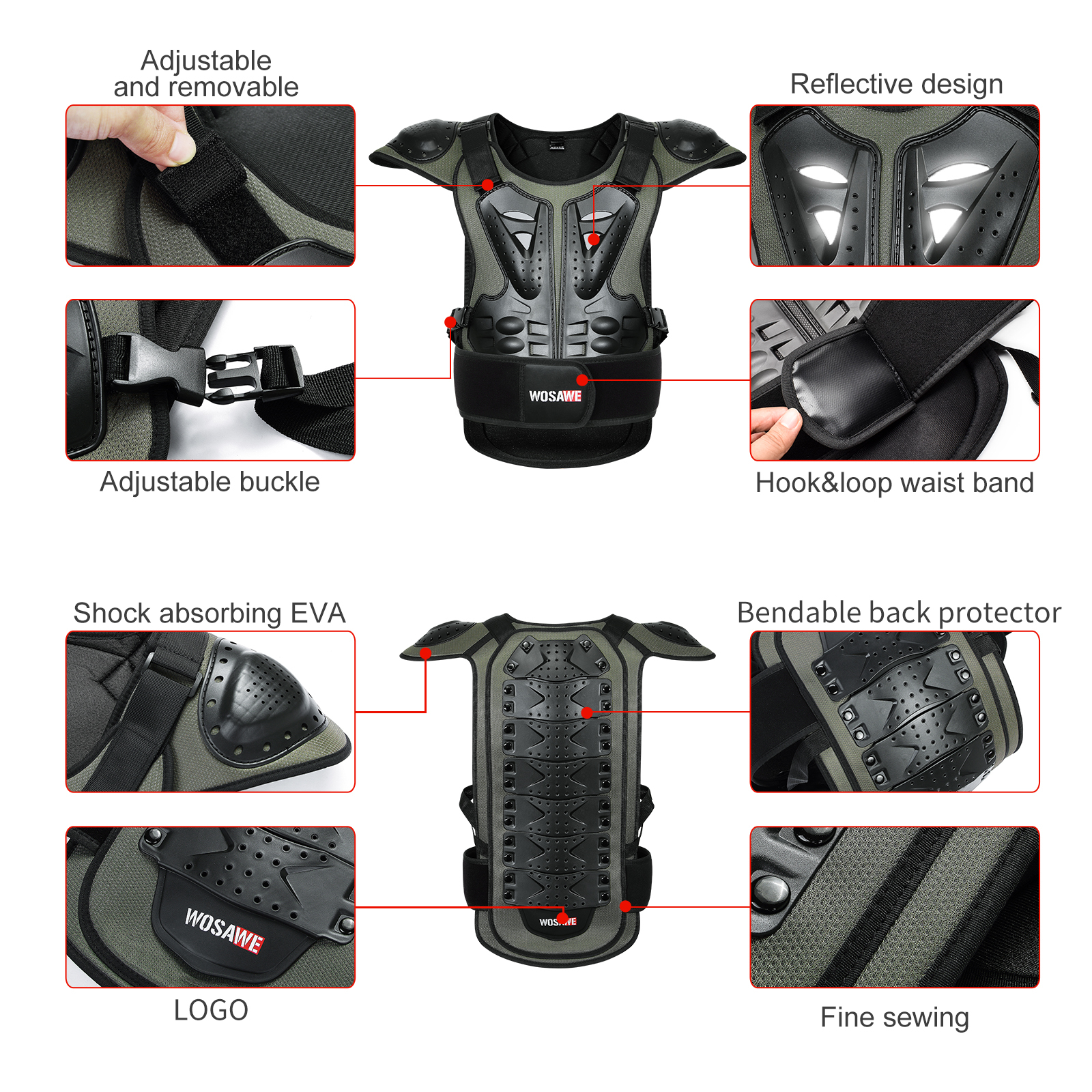 Detachable front and back armor, controlled by double Hook&Loop at shoulders and quick release buckle at waist