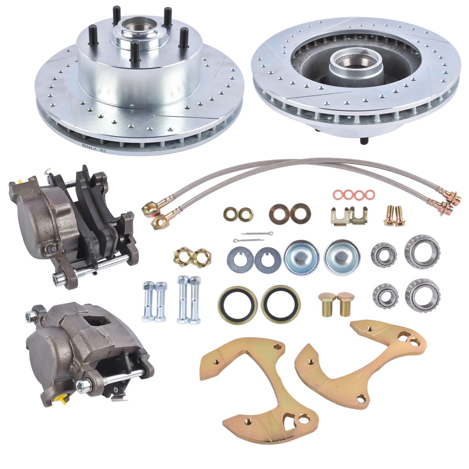 11-inch drilled and slotted rotors feature GM 5x4.75 bolt pattern with 7/16-20 studs