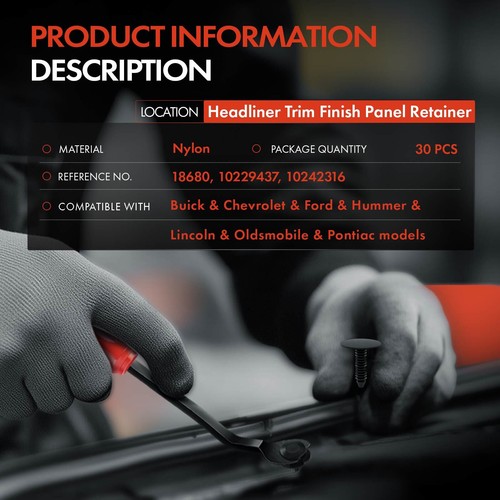 30x Headliner Trim Finish Panel Retainer clips for Ford 7.14 mm Nylon Push-Type