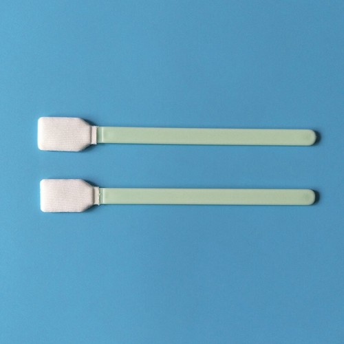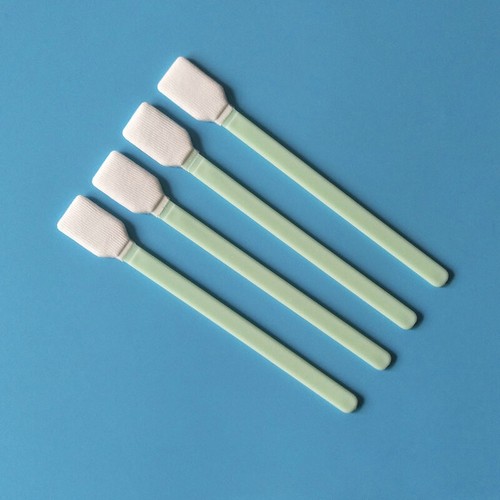 Cleaning foam swab is constructed from compressed polyurethane foam securely bonded to a 100% polypropylene shaft that is free from organic contaminants such as silicone, amides or phthalate esters.
