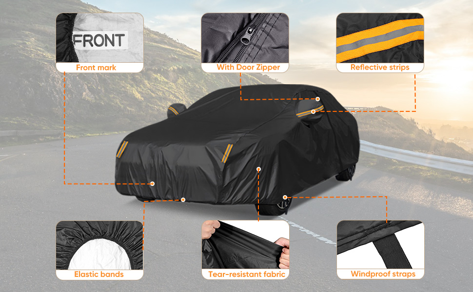 A: Our car covers are easy to install. You simply unfold the cover, place it over your car from front to back, and secure it using the elastic hems or provided straps.