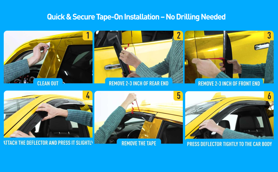 The AEROGUYS window visors are specially engineered by using cutting-edge technology to deflect rain, wind, sunshine, snow and keep your car cooled. The 4-piece set comes with easy to install 3M tape and installation manual.