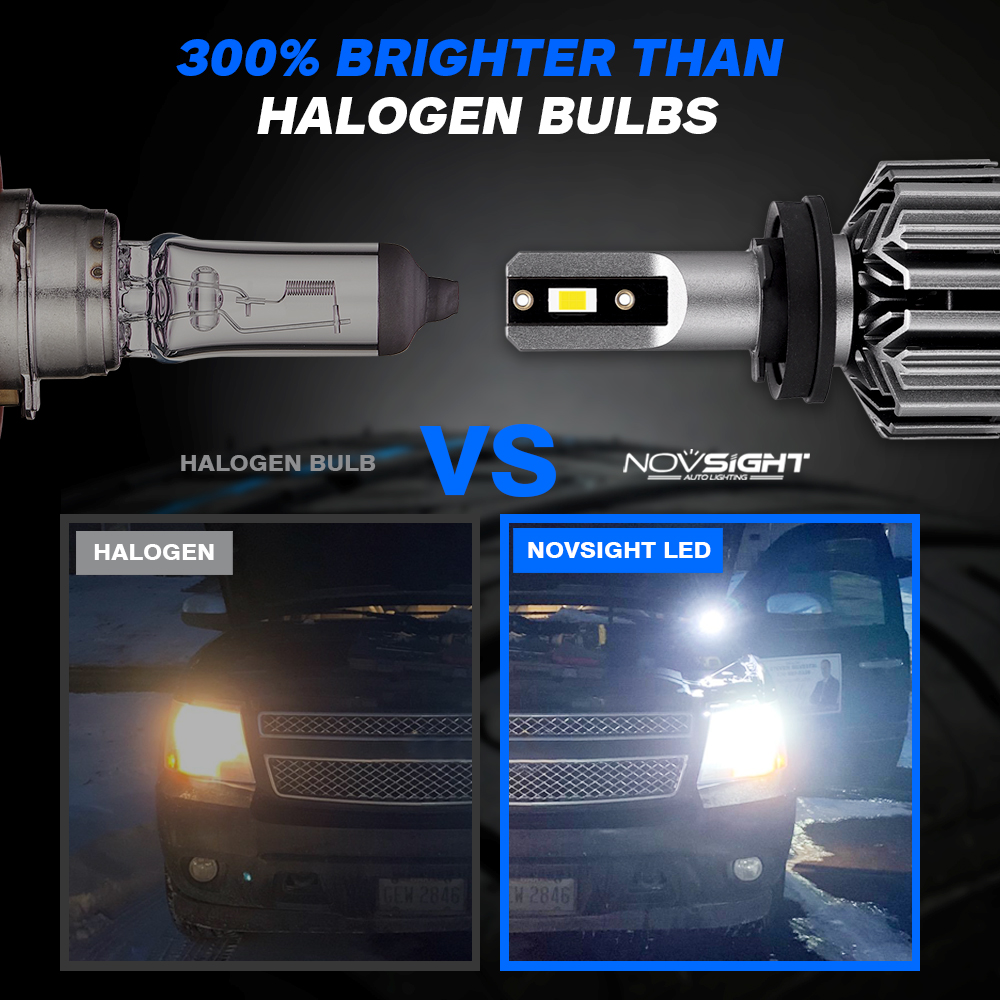 ?【Durable than halogen or fanless bulbs】NOVSIGHT 9005 9006 high low beam LED lights bulbs are fully corrosion resistant, fast rotation speed and large ventilation fan design that prevents overheating.